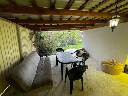 Во дворе имеется навес, мангал и зона отдыха.