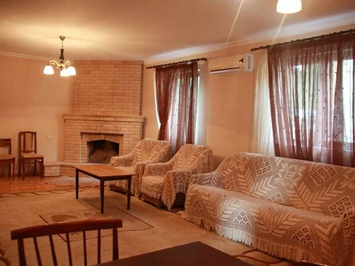 Сдается под-ключ большой загородный дом, расположенный в тихом, спокойном и очень живописном районе под названием Мачара. Следует отметить, что данный район особенно славится чистотой своих пляжей и морской воды и считается наиболее благоприятным и излюбленным местом для туристов и ценителей спокойного семейного отдыха. Расстояние до пляжа не превышает 400 м. В доме могут свободно разместиться несколько семей или группа друзей в количестве до 10 человек. Он включает в себя 5 спальных комнат, большой зал, кухню, оборудованную всем необходимым для самостоятельного приготовления еды и два санузла. Все комнаты оборудованы новой современной мебелью. В коридорах установлены мощные инверторные кондиционеры, обеспечивающие прохладу всего помещения. В наличии, стиральная машина, гладильные принадлежности смарт ТВ, высокоскоростной интернет.