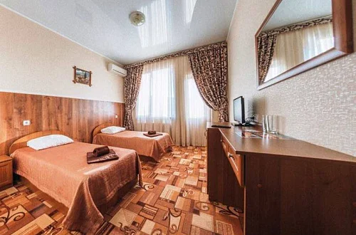 Вдали от шумных дорог путники найдут для себя так необходимую им тишину, смогут отдохнуть в комфортабельных номерах. Каждый из них оборудован кондиционером, телевизором и беспроводным доступом в сеть интернет по Wi-Fi. Для автомобилей на территории мини-отеля есть внутренняя парковка - что позволит Вам не беспокоиться за судьбу своего авто во время Вашего отсутствия.