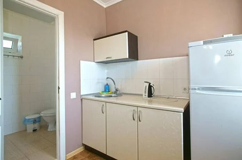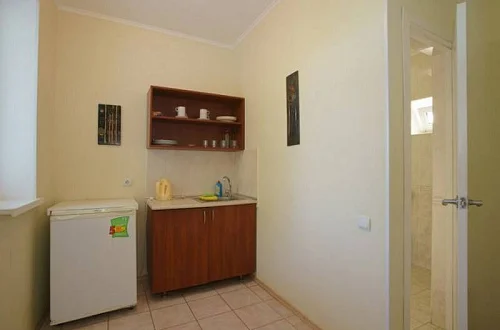 - кухонная зона (в наличии чайник и раковина, возможность приготовления пищи в номерах не предусмотрена).