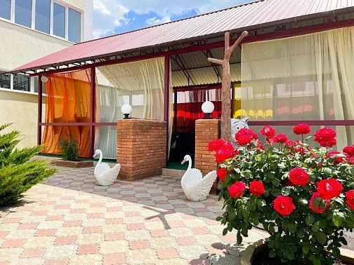 После утреннего пробуждение или на закате дня усладой для ваших глаз станут пышные кусты зелени и цветущих роз! Владелец отеля Николай - профессиональный садовод. Это его детище.