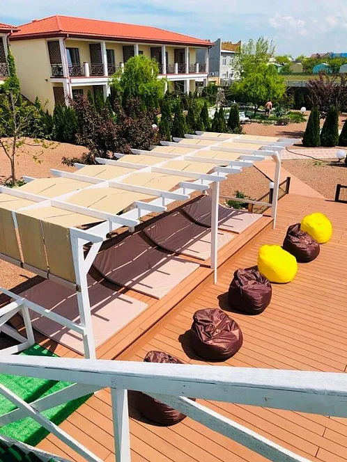 У нас вы можете отдохнуть от городской и шумной суеты, выпить на закате бокал глинтвейна, сидя в кресле на балконе своего номера и наблюдать как солнце прячется за море. Нашей отличительной чертой является расположение в самом экологичном и красивом месте поселка Межводное. Мы гарантируем Вам и вашим детям спокойный и безопасный сон от шума дискотек, баров и веселых компаний на набережной.