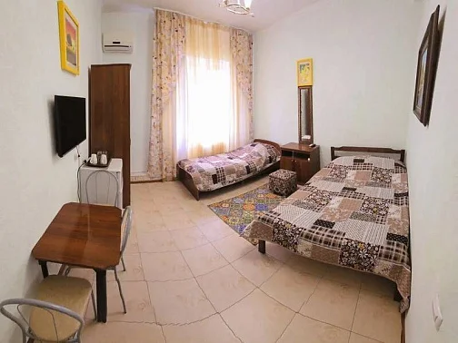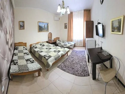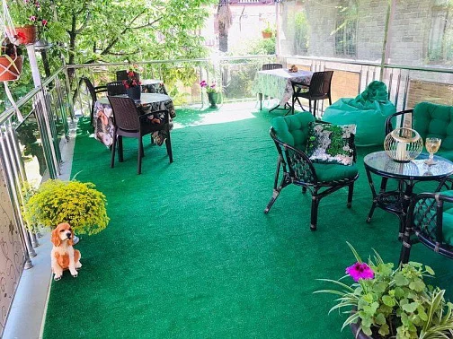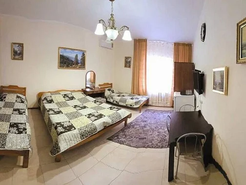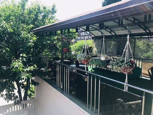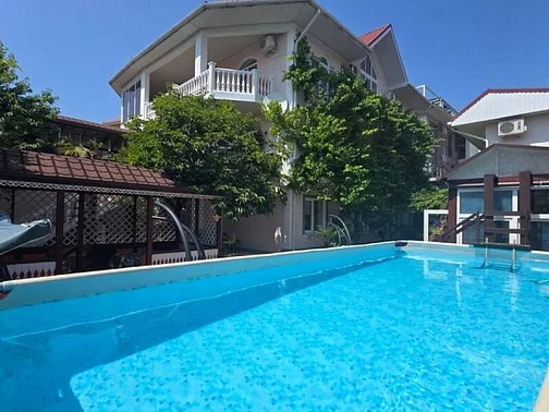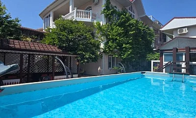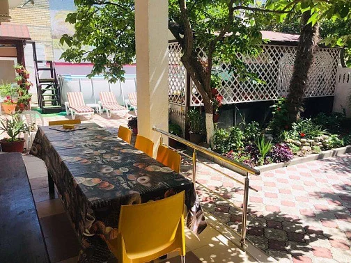 Гостевой дом находится в Лазаревском рядом с аквапарком "Наутилус". Спокойный обжитой район вдоль реки Псезуапсе, где на каждом шагу магазины, кафе и небольшие ресторанчики. Если после пляжа захочется городских развлечений, достаточно просто выйти за ворота. Сам дом стоит в окружении зелени на расстоянии от проезжей части. Ближайший пляж "Багратион" в 15-20 минутах прогулки по ровной местности, центр Лазаревского - в 10 минутах. В шаговой доступности Псезуапсе: когда на море шторм, можно отдохнуть на берегу реки. Собственный дворик закрыт от посторонних. Он утопает в зелени, поэтому найти тень - не проблема даже в полдень. Во дворе есть бассейн для взрослых и детей.