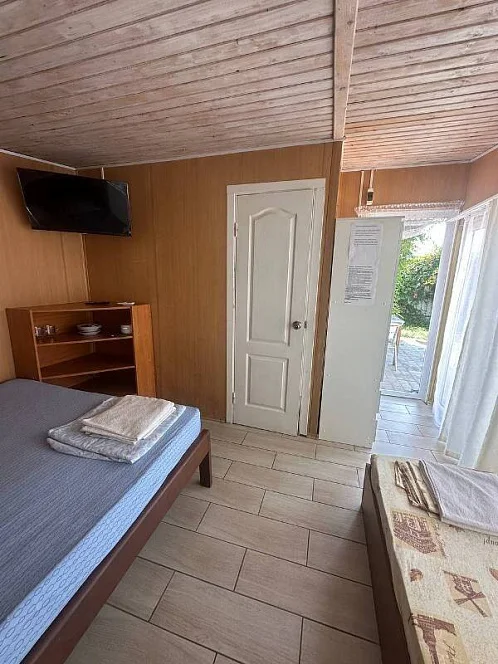 Мы рады предложить комфортабельные номера для 2, 3 и 4 человек. Каждый номер оснащен современной мебелью, холодильником, кондиционером, телевизором и отдельным санузлом. Для вашего удобства предусмотрены веранды со столиками и стульями, идеально подходящие для семейного отдыха.
