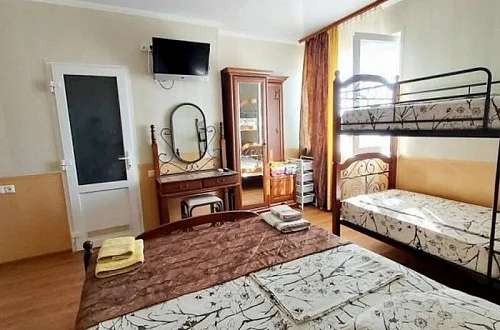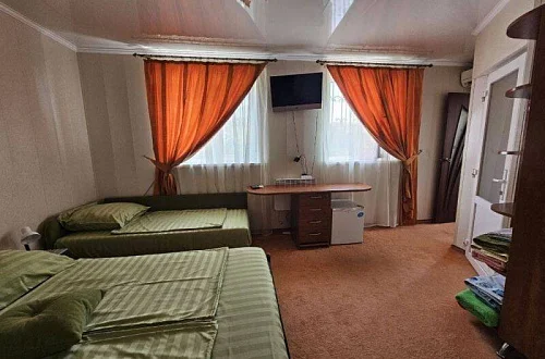 "Villa SV" - это небольшая гостиница на 8 комфортабельных номеров со всеми удобствами. Находится в начале косы, на первой линии. Большая ухоженная, зеленая территория с ландшафтом и возможностью посидеть в беседке у моря, возле фонтана и в тени деревьев у костра. Расположение комнат такое, что никто никому не мешает, нет шума и суеты. Можно снять один из этажей для большой семьи или компании. На сайте удобно показано расположение комнат по этажам и каждую комнату кликом можно рассмотреть.
