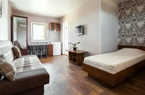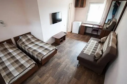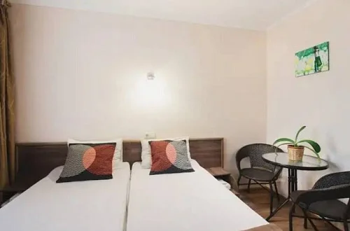 Отель подходит как для семейного отдыха, так и для туристических групп. Расположен на удалении от шумных мест, шум ночного веселья не будет беспокоить и мешать отдыхать. Если вам захочется присоединиться к ночной жизни побережья, то за считанные минуты вы можете дойти до ночных клубов, баров и кафе. В нашем отеле вас ждет квалифицированный персонал, уютные и тихие номера, свежие фрукты и овощи, ласковое море и южное солнце.