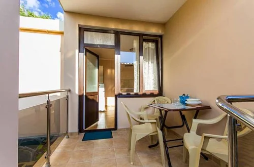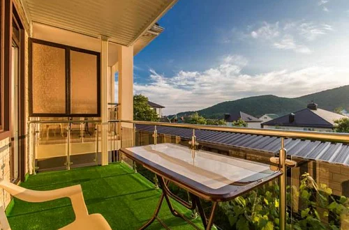 Комнаты имеют отдельные балконы со столиками где можно отдохнуть в тени винограда.