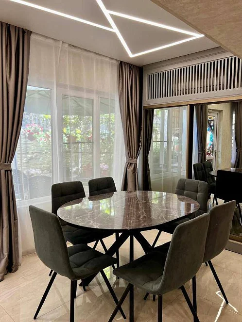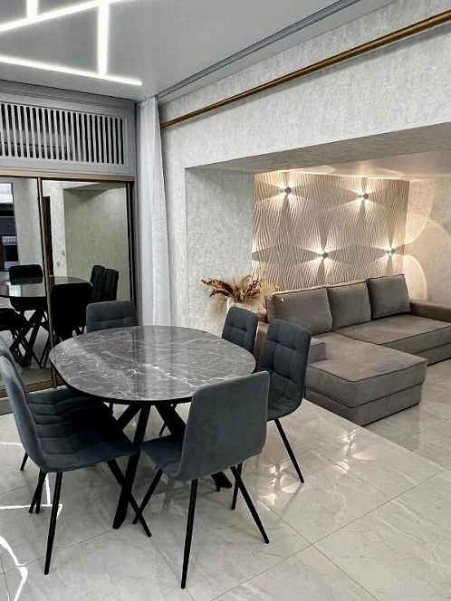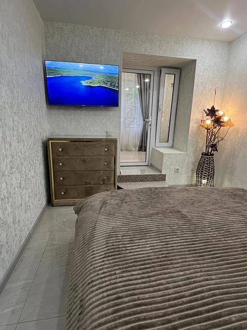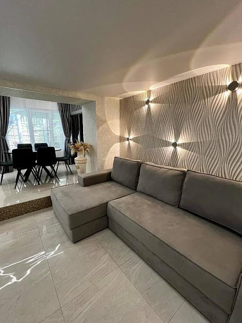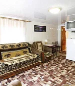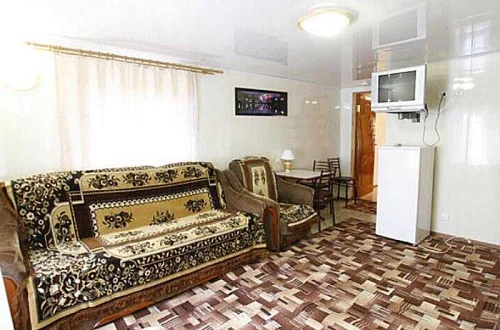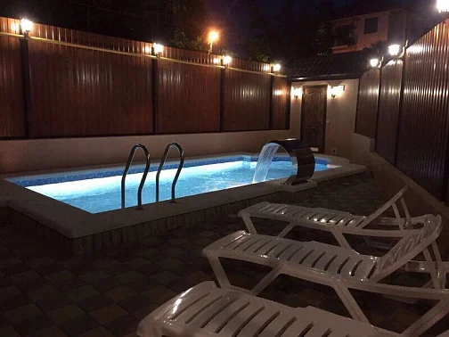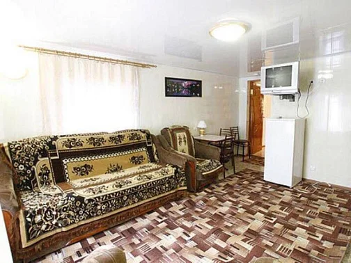 Сдаётся 3х-комнатный Люкс до 6 человек. Полностью укомплектован, с отдельным входом. В номере гостиная с модульным раскладывающимся угловым диваном, холл с обеденной зоной, кухня, 2 изолированные комнаты с двуспальными кроватями, санузел. Во дворе имеется бассейн с подогревом, шезлонги, мангал. У номера имеется свой индивидуальный столик.