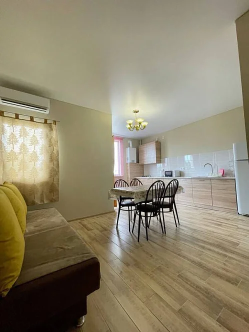 Квартиры в новом доме с выходом к морю Дом расположен на берегу Черного моря в 80 метрах от пляжа "Жемчужный". К услугам гостей бесплатный Wi-Fi интернет. Вся мебель 2020 года.