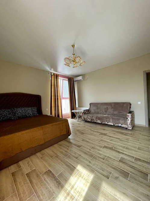 Квартира с дизайнерским ремонтом, оснащена кондиционером, телевизором с плоским экраном и спутниковым ТВ, прекрасно оборудована, новая мебель, удобная современная, ортопедические матрасы. Планировка квартиры - большая комната, просторная гостиная с кухней, позволяет комфортное размещение семьи из 4 человек, возможно размещение 5 человека за доп. плату. Предоставляются роскошные постельные принадлежности, комплект полотенец.