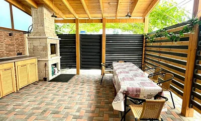 Душ и туалет расположен на 1 этаже. Очень удобно что есть внутренняя территория с мангальной зоной и большим обеденным столом.