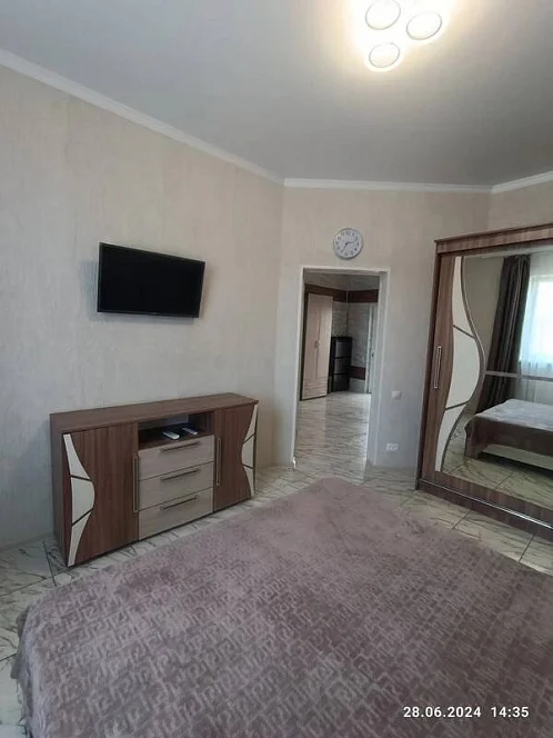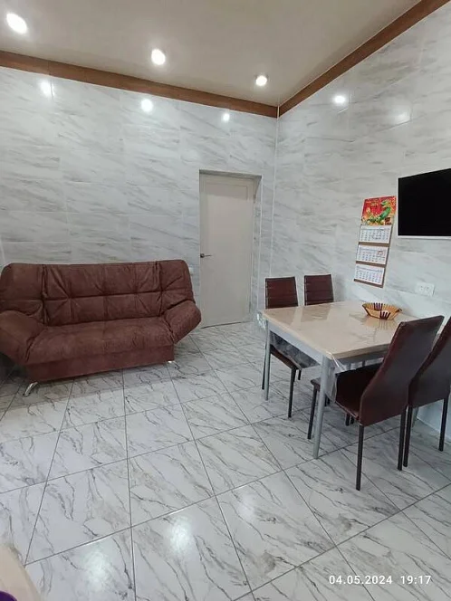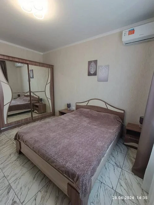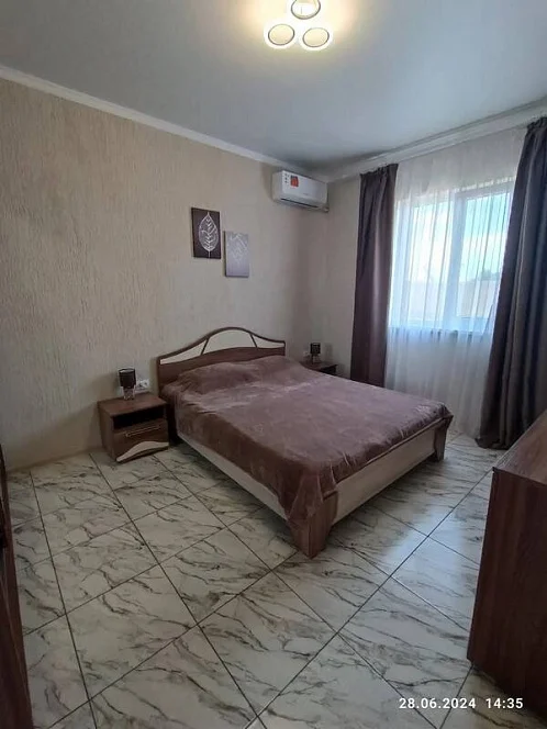 Комната - раскладной двуспальный диван-евро и раскладное кресло - кровать. Есть двухспальный диван в столовой. Вся необходимая мебель, современный ремонт, кондиционер в каждой комнате, телевизор, интернет, WI-FI по всей территории, два санузла , стиральная машина-автомат, посудомоечная машина, выход из кухни на террасу,что очень удобно, огороженный двор, мангал, постельное белье, полотенца, посуда, автоматические ворота. Все есть для спокойного, комфортного отдыха. До ближайшего открытого пляжа мин. проехать на авто, это 1,7 км. или 15-20 мин. пешком.