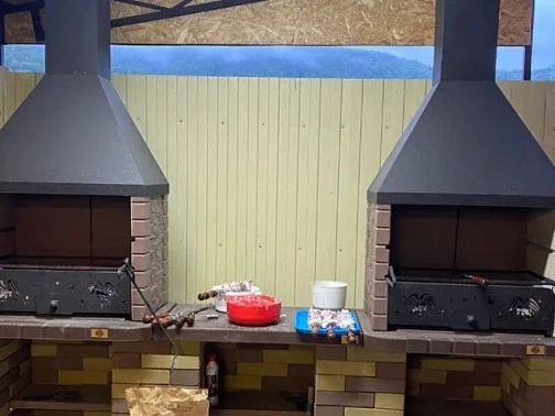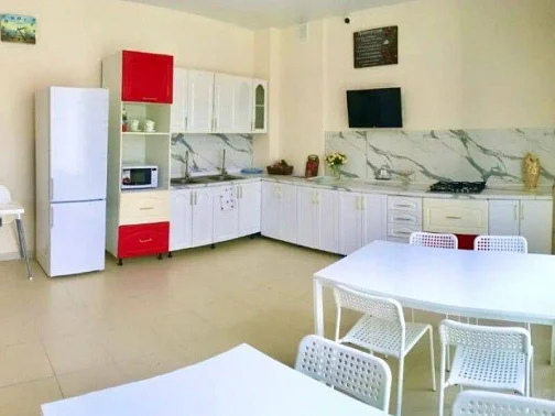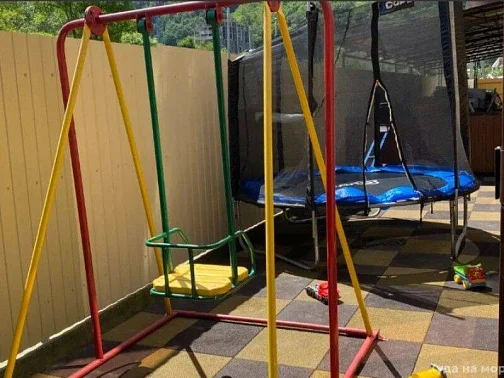 В уютном дворе установлена детская площадка, беседка для отдыхающих, качели. На первом этаже дома, есть полноценно оборудованная кухня со всем необходимым, в которой будет комфортно даже в межсезонье. Барбекю для шашлыка и блюд на мангале. Бесплатная парковка для транспорта, на закрытой территории дома.