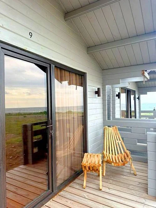 В таких коттеджах светлая палитра, натуральное дерево и панорамные окна с видом на море создают ощущение уюта и гармонии с природой.
