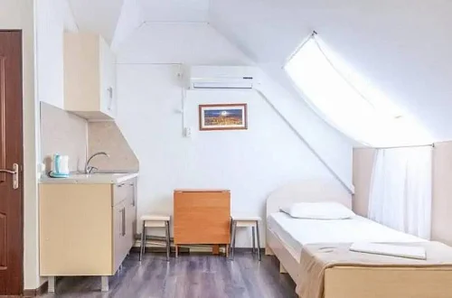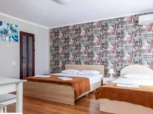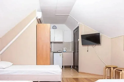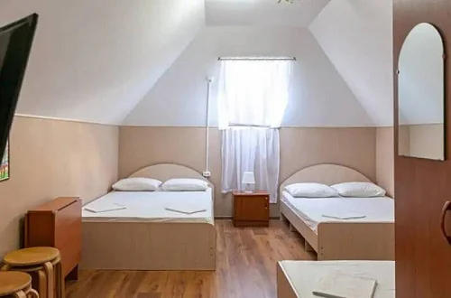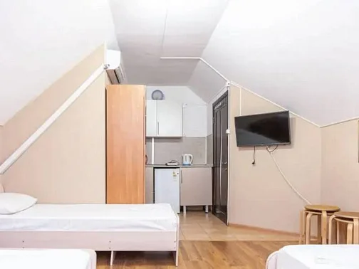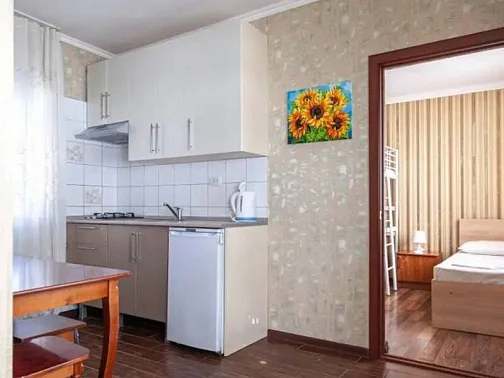 В каждом номере есть всё для комфортного отдыха: своя кухня с посудой и санузел с душевой, сплит-система, телевизор, холодильник, электрический чайник, интернет Wi-Fi в каждом номере.