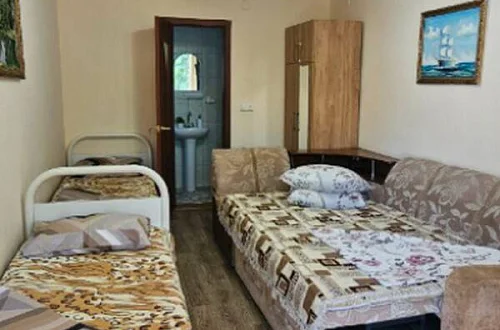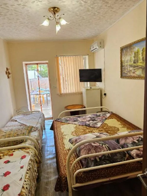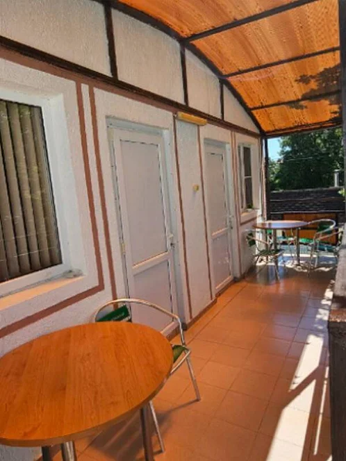 В домике 2 смежные комнаты (7 спальных мест), кухня, душ, туалет.