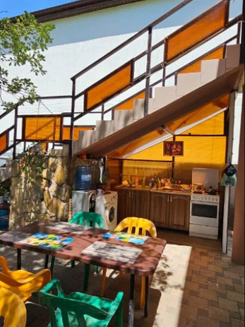 дворе на улице есть летняя кухня, стиральная машинка, микроволновка, кулер, плита, посуда, мангал, шампура, столы.
