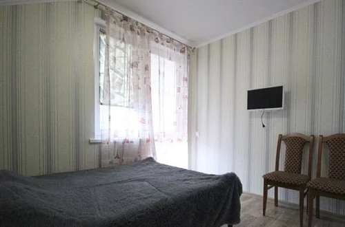 В помещениях: санузел, сплит-система, холодильник, телевизор с цифровыми каналами, двуспальная кровать, тахта, шкаф, тумбочка. В одном из помещений дополнительно небольшая кухня с СВЧ-печью и эл. чайником; одно помещение с балконом.