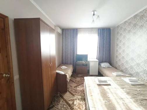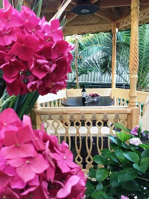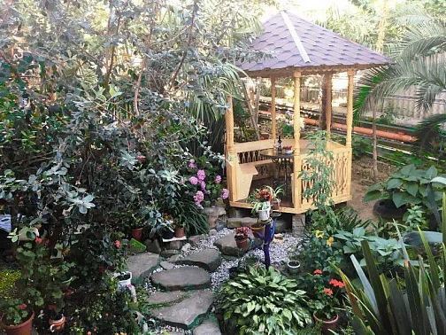 Уютный гостевой дом в Курортном городке. Комфортные номера с удобствами, эко-домики для пар, зелёный дворик и беседка. К услугам гостей общая, кухня для самостоятельно приготовления, обеденная зона на свежем воздухе. Для самых маленьких гостей батут