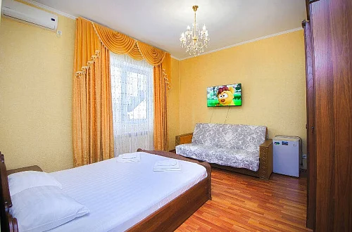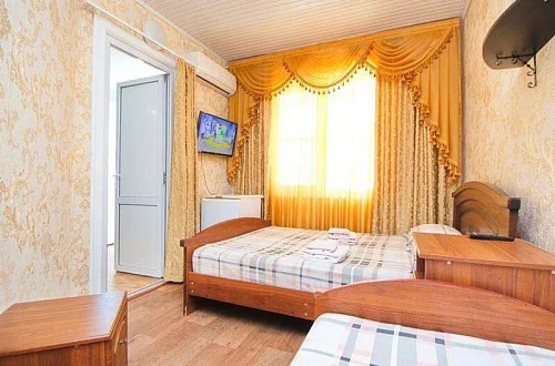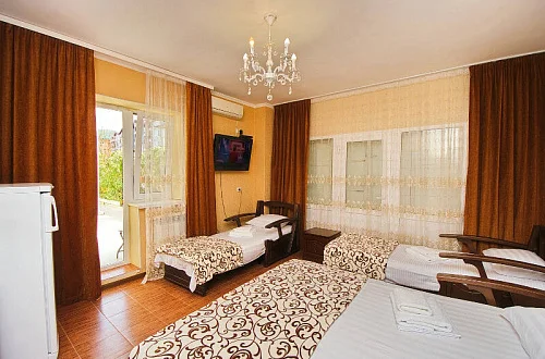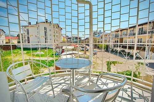 Территория гостевого дома оформлена цветами и пальмами, что позволит почувствовать атмосферу Черноморья и домашнего уюта.