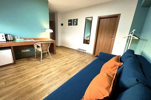 Выберите идеальный вариант: от стильного стандарта до просторного люкса с видом на море. В каждом номере - всё для вашего удобства: кондиционер, Wi‑Fi, современная мебель, а в люксах - ещё и мини-кухня. Уютно как дома, только лучше.