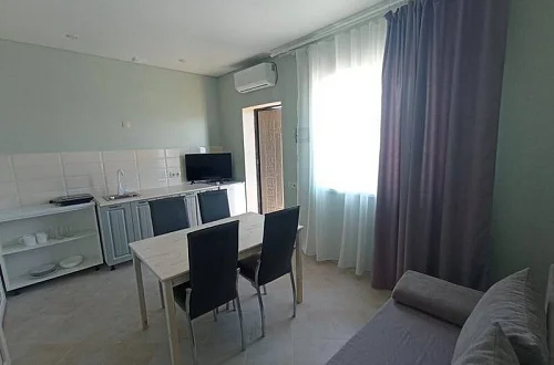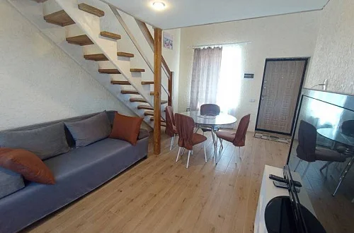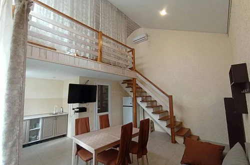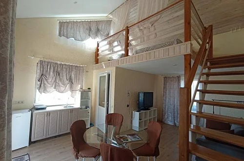 - Отдельно стоящий двухуровневый дом, площадью 50 кв. м., с собственной кухней и санузлом.