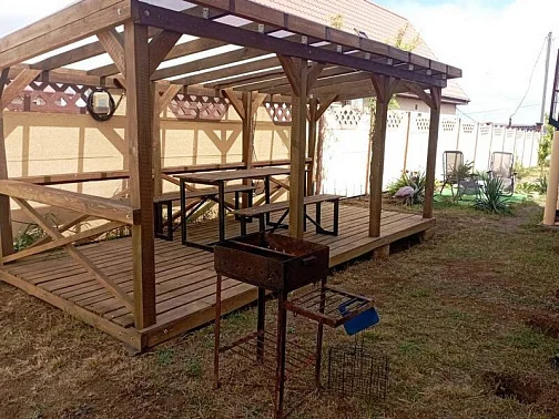 Во дворе в бесплатном пользовании гостей автопарковка, беседки, мангалы, детская игровая зона, качели, песочница.
