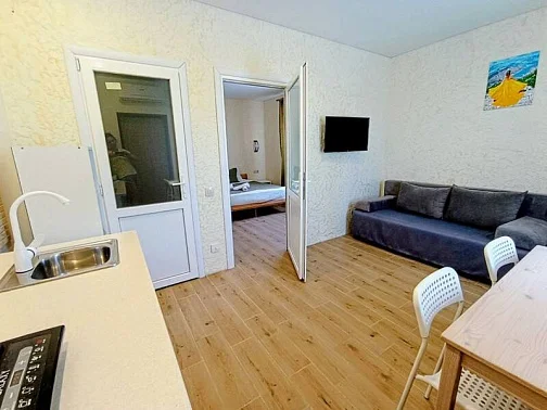 - Просторные двухкомнатные апартаменты, площадью 30 кв. м., с собственной полноценной кухней и санузлом.