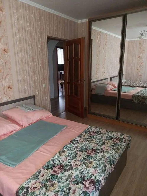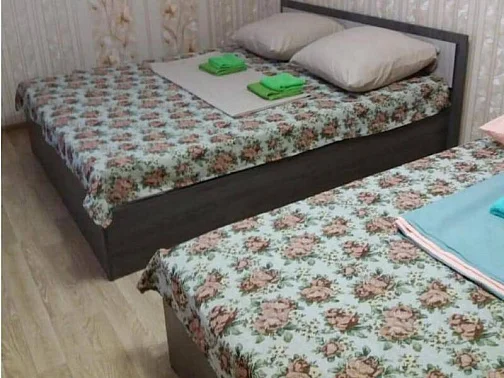 На 2-ом этаже 2х-этажного дома с отдельным входом находятся две изолированные комнаты (35 кв.м. и 18 кв.м.) до восьми человек. В каждой по две двухместных кровати. Имеется телевизор, две сплит-системы, утюг, фен, постельные принадлежности