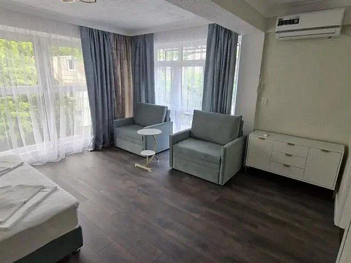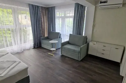 Недалеко от нас в шаговой доступности - 15 мин. ходьбы, находится самый большой на побережье аквапарк и развлекательный центр "АкваЛоо". На выходе к морю от нас расположился Дельфинарий. По дороге к морю магазины продуктовые, овощные лавки, "Магнит", центры сотовой связи, аптеки.
