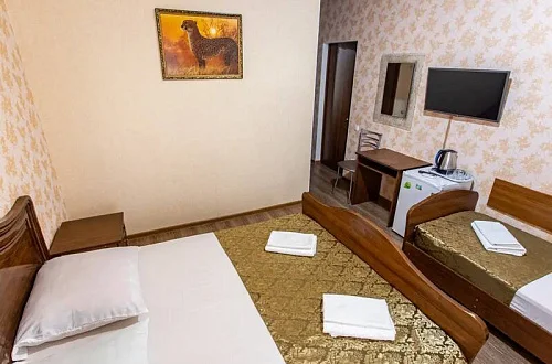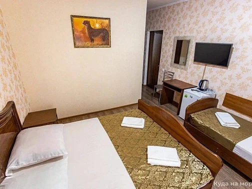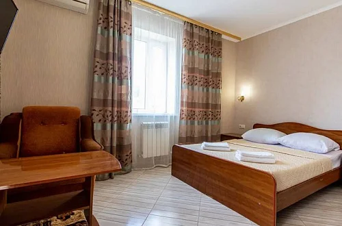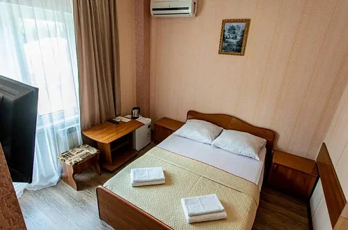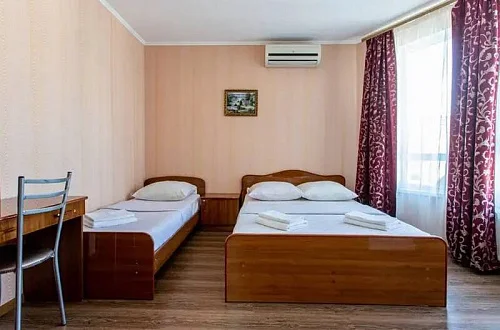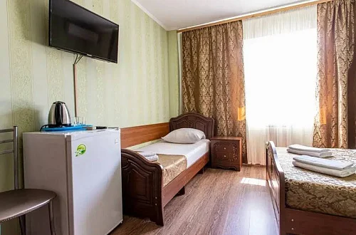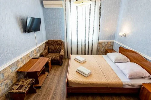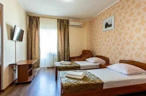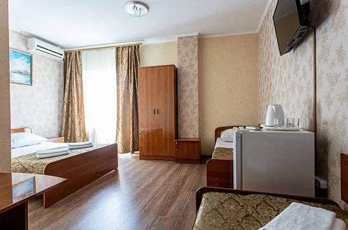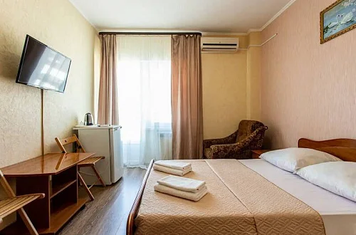 В каждом номере установлены сплит-система, телевизор ЖК, холодильник, эл. чайник, набор мебели, душевая кабина и санузел, наличие балкона необходимо уточнить при бронировании.