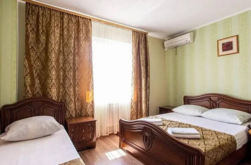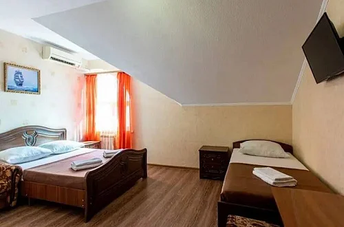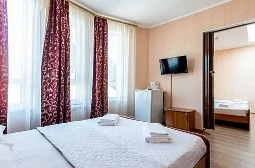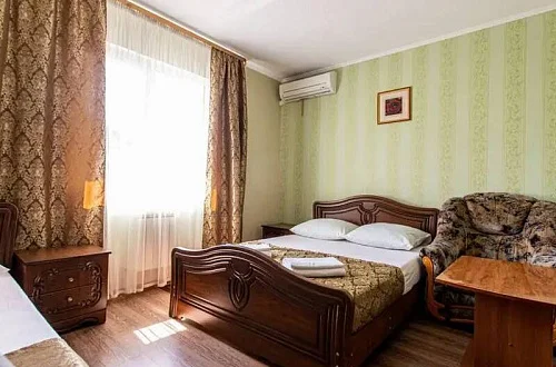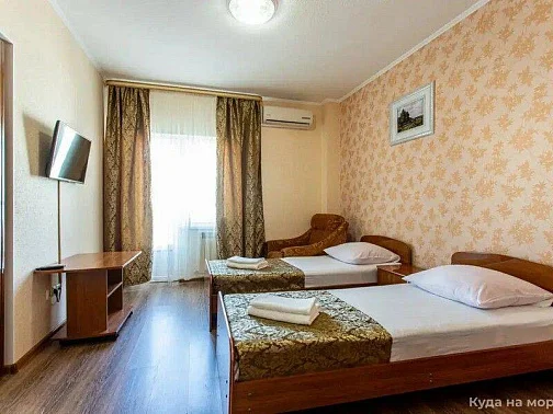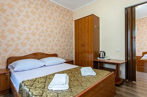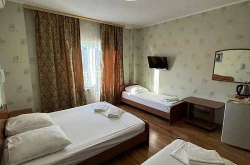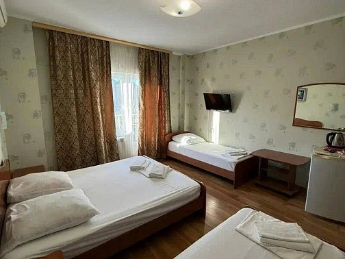 Наш гостевой дом предлагает комфортный отдых как в номерах класса "Стандарт", так и класса "Комфорт". Размещение гостей осуществляется в 1-комнатных и 2х-комнатных номерах, в которых могут разместиться от 2х до 6 отдыхающих. Площадь номеров - 20 - 35 кв.м.