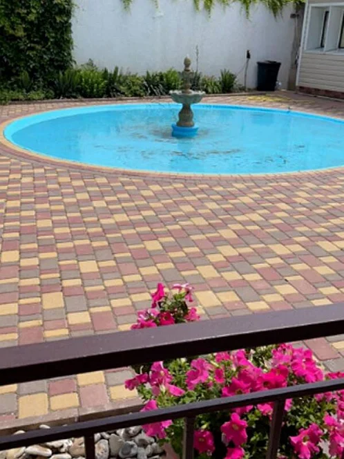 - Декоративный пруд с фонтаном: создаёт атмосферу спокойствия и уюта в нашем дворе.