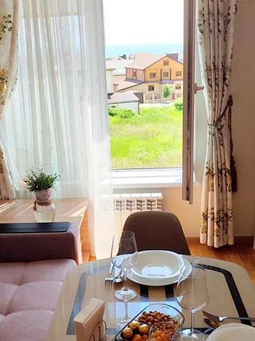 Представьте себе отдых в уютной современной квартире, а по вечерам - восхитительные закаты с просторной зоны отдыха на крыше. Отсюда открывается завораживающий панорамный вид на море и горы: ни шум прибоя, ни городская суета не помешают вам насладиться гармонией природы в полной тишине. Приглашаем вас провести незабываемое время в просторной "Евродвушке" в самом сердце живописного и экологически чистого района - села Мысхако.