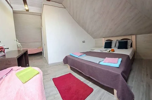 Удобное размещение: скоростной Wi-Fi. Холодная и горячая вода круглосуточно. Видеонаблюдение по всей территории гостевого дома. Гладильная доска и утюг в свободном доступе. Закрытая от посторонних зелёная облагороженная территория. Стоянка для автомобиля (места ограничены, наличие уточняйте). Трансфер - встречаем гостей!
