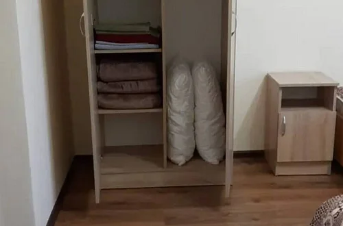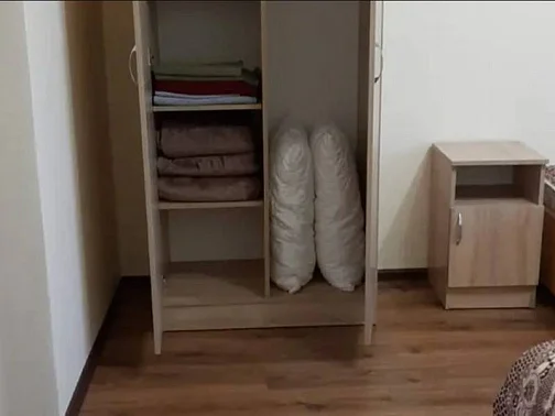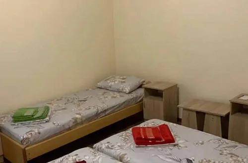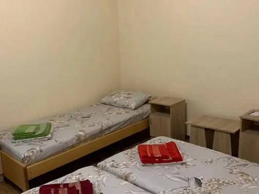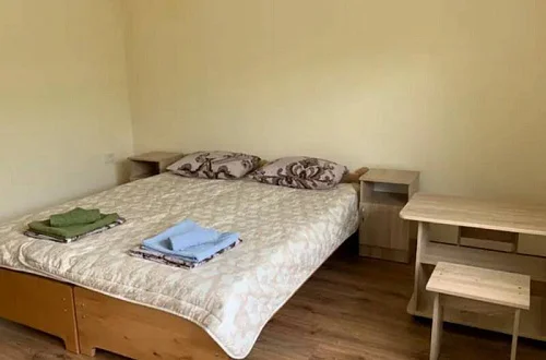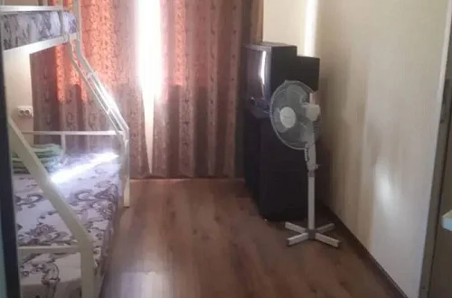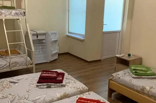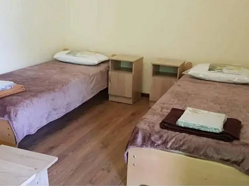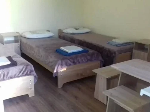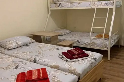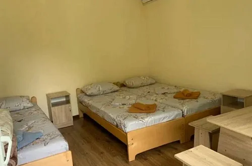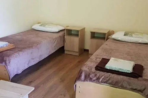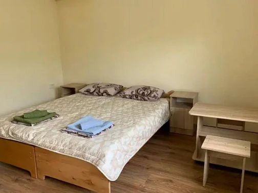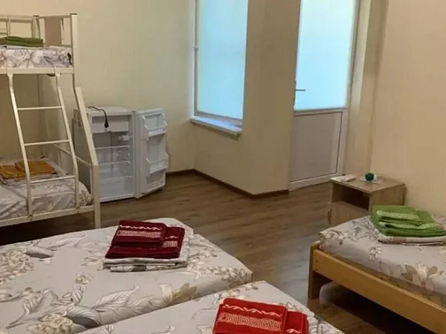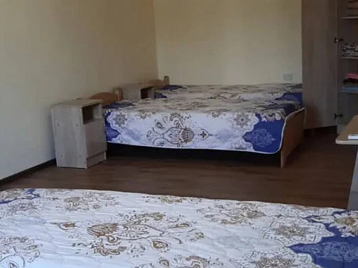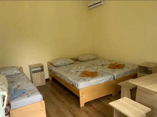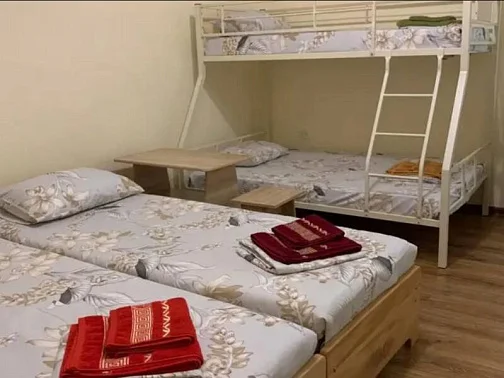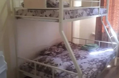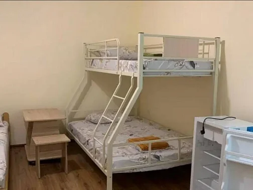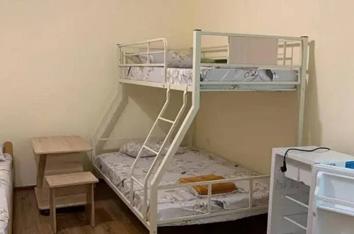 Имеется "Семейный" номер: 2 комнаты, все удобства, двуспальная кровать, двухъярусная кровать, холодильник.