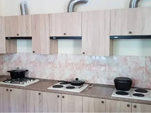 Имеется просторная кухня - столовая, оснащенная необходимым кухонным оборудованием, столовыми приборами, где можно самостоятельно приготовить для себя и семьи.