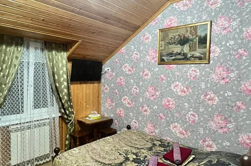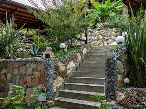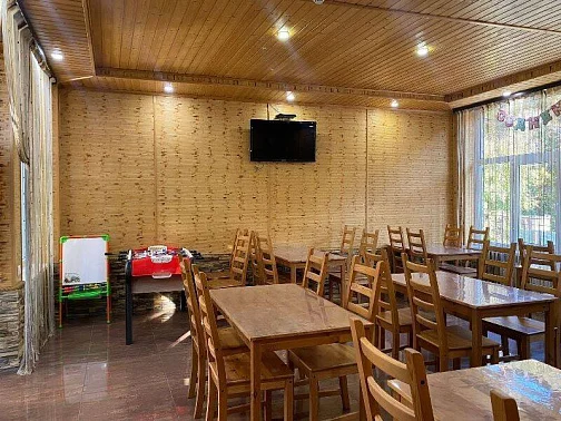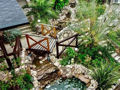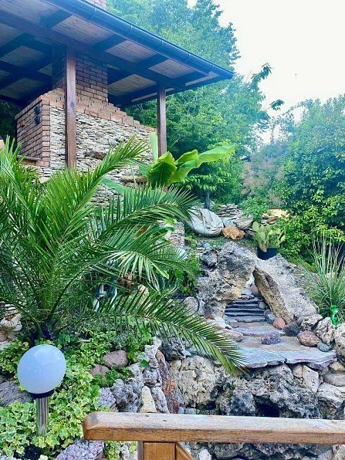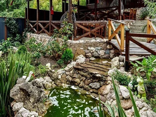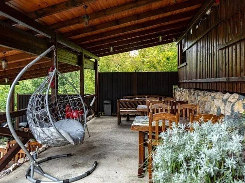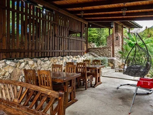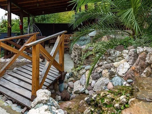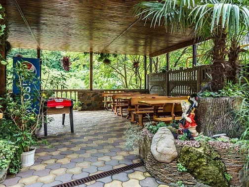 Территория нашего гостевого дома утопает в зелени, есть все необходимое для комфортного семейного отдыха. На террасе с видом на горный ландшафт можно отдыхать за столиками и наблюдать за экзотическими рыбками в красивом водопаде. По зоне отдыха протекает искусственный ручей с мостиком ,впадающий в небольшой прудик. Любоваться всем этим и горным пейзажем можно в деревянных беседках. Вечерами здесь играет легкая музыка - прекрасно проведите время с друзьями и семьей в нашем доме!
