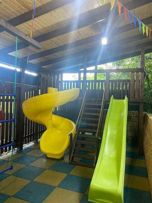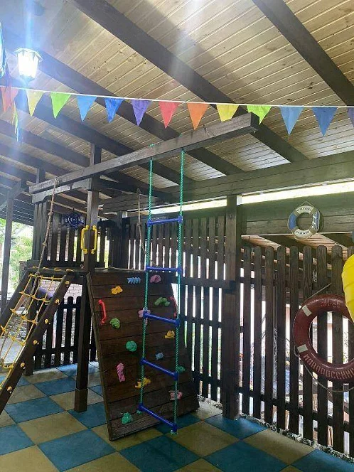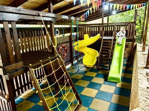 Для детей у нас имеется игровая площадка с горками и лазалками,большой батут. Для совсем маленьких- детский уголок.