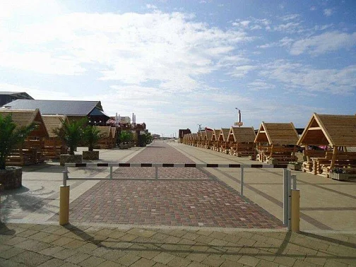 ДО ЕВПАТОРИИ - 12 км ПО ТРАССЕ СИМФЕРОПОЛЬ - ЕВПАТОРИЯ. До САК - 8 км. До самого большого в Крыму аквапарка - 500 метров. На территории бесплатная парковка. Пляж площадью 11000 кв. м., набережная.