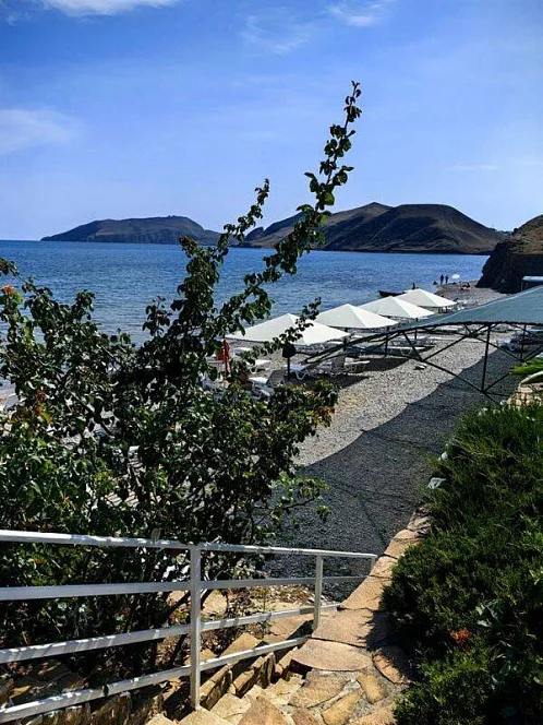 - пляж песчано-галечный - 0 минут (на пляже)