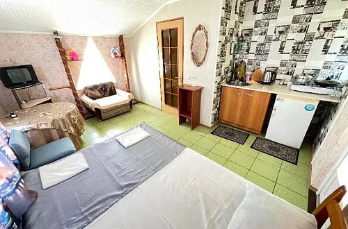 В числе удобств: большой зеленый двор, беседка, мангал, стиральная машина, утюг и гладильные принадлежности.