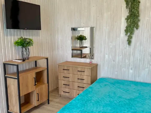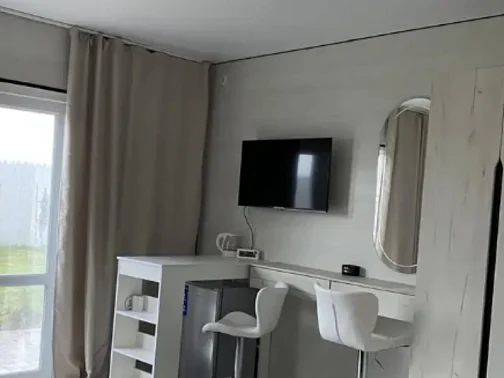 Номера оснащены всем необходимым, в них есть ванная комната со всеми удобствами. В комнатах есть системы охлаждения, телевизоры, комфортные двуспальные кровати, а также доп. спальные места (двуспальный диван).