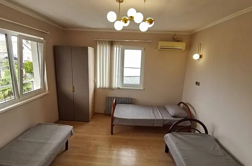 Новый район построенный к Олимпиаде 2014 г., озеленение, освещение и т.д. До моря 15 мин пешком (1200 м.), Олимпийский парк, детский тематический Сочи-парк, трасса Формула 1-10 мин, теннисная академия и каток - 5 мин. пешком. Место для парковка на 3 машины, никаких пробок. До Красной поляны (Роза-Хутор) 30 мин. на машине или на экспрессе "Ласточка". Бассейн без подогрева, работает круглогодично, рассчитан на 2 коттеджа.