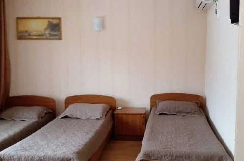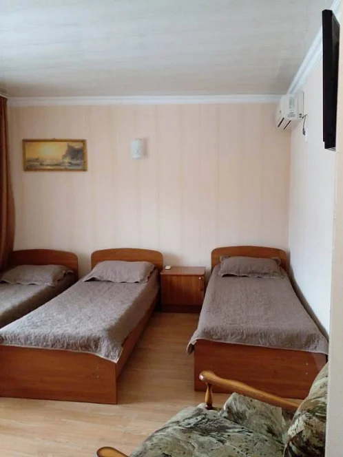 По размещению: в двухместных номерах - двуспальная кровать, в трёхместных - три односпальные. Постельное бельё предоставляем всем гостям. Вид из окна - во двор, а в отдельных номерах можно поймать и вид на море. Курение в номерах запрещено. Уборка предоставляется по запросу и в стоимость не входит.