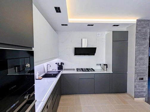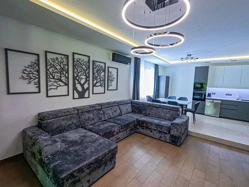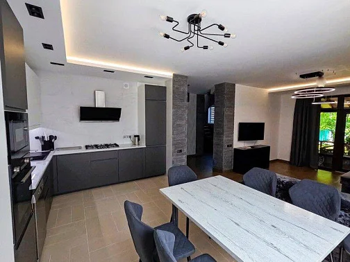 Двухспальный диван-кровать 160 см., комод, шкаф для вещей, телевизор, сплит-система. Кухня-столовая-гостиная (60 кв.м.)
