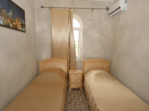 Наш дом находится всего в 10-15 минутах пешком от моря (примерно 750 м). Пляж песчаный, просторный, благоустроенный, есть шезлонги и кафе. Вода чистая, воздух свежий, пахнет морем и степью. Заозерное особенно любят гости из больших городов: здесь тихо, безопасно и по-
