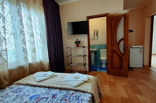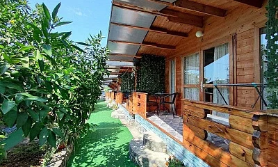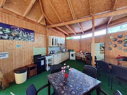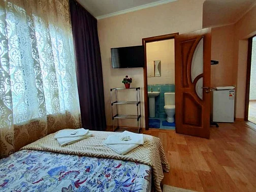 Наш гостевой дом предлагает своим гостям ухоженные уютные коттеджи со всеми удобствами. Огороженная территория, зона барбекю, беседки. Так же гости могут воспользоваться кухней для самостоятельного приготовления, все необходимое для этого имеется (посуда, микроволновка, мультиварка, большой холодильник), полностью оборудованная кухня всегда к вашему распоряжению. За 3 минуты прогулочным шагом, Вы можете добраться до набережной и галечно-песчаного моря, здесь же для Вас найдутся развлечения, столовые и кафе! В шаговой доступности продуктовые и сетевые магазины с полуфабрикатами, так же автобусная остановка.