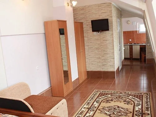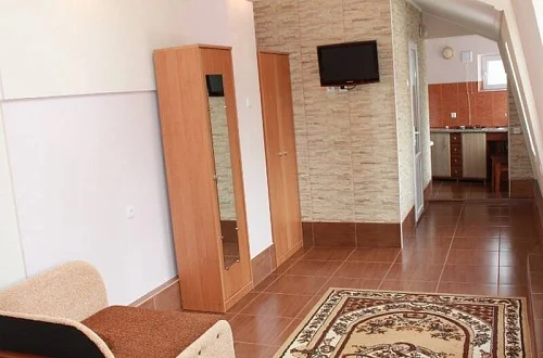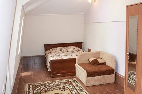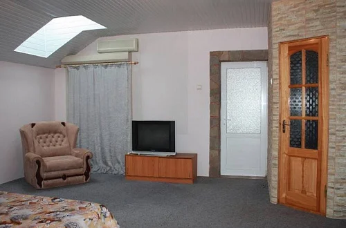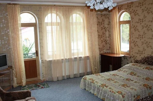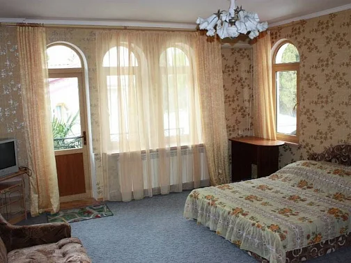 Все комнаты в доме снабжены своей мини-кухней (с набором посуды и плитой), душем, туалетом, кабельным ТВ, Wi-Fi, кондиционером, подогревом воды. В комнатах имеется балкон или терраса, где гости могут отдыхать на свежем воздухе Имеется стоянка для легковых автомашин и летняя беседка общего пользования.