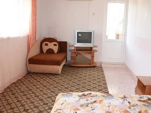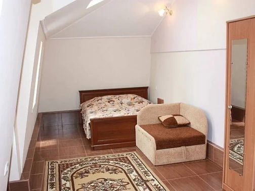 В "Семейной с балконом" двуспальная кровать, и кресло-кровать, в "Большой семейной" двуспальная кровать, диван-кровать и кресло-кровать.